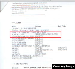 Фрагмент полицейского досье Монако на Скигина. Указано, что Скигин работает с Трабером, что Петербургский нефтяной терминал – это “русская мафия”, и офшор “Горизонт” – тоже.