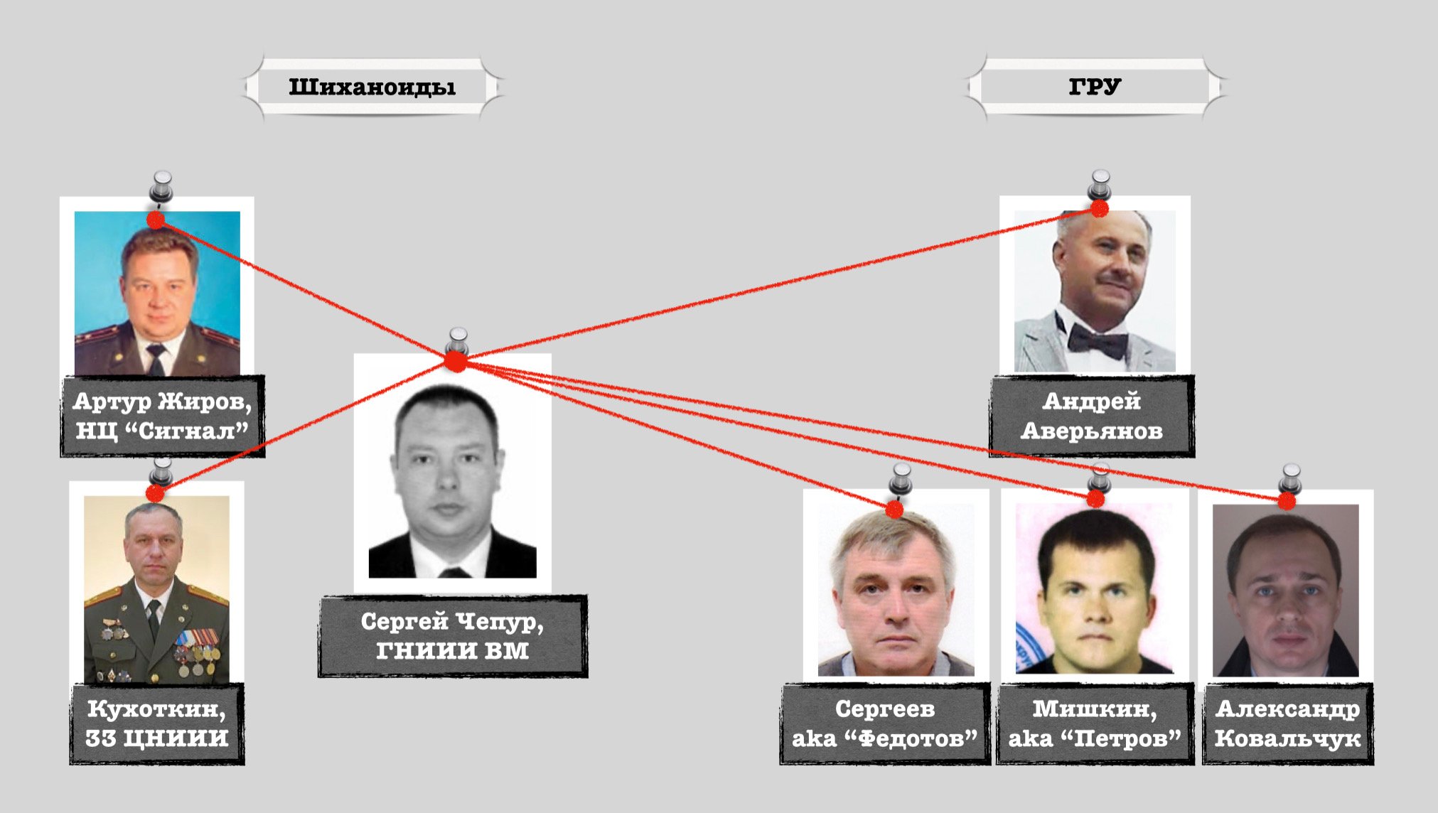 Сергей Викторович Чепур, возглавляющий ГНИИИ ВМ с момента образования института в 2015 году, привлек внимание Bellingcat после того, как оказалось, что его номер является одним из самых часто встречающихся в биллингах звонков генерал-майора Андрея Аверьянова, командира войсковой части 29155.